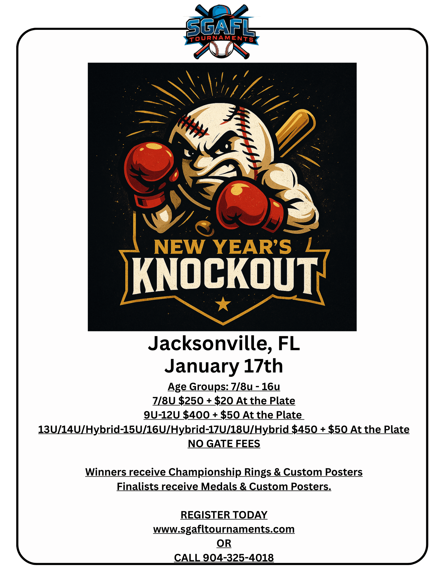 13u/14u Hybrid $450 entry, pay umps $50 at plate NO GATE FEES