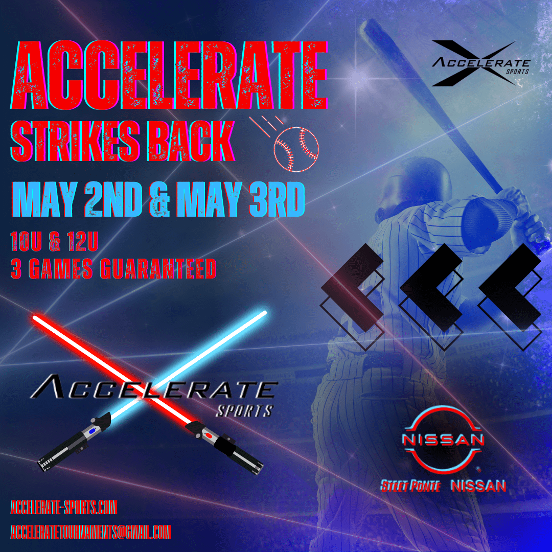 The Accelerate Strikes Back Baseball Tournament will take place on May 2nd & May 3rd. At, the Accelerate Sports Complex located at 5241 Judd rd. Whitesboro, Ny 13492.